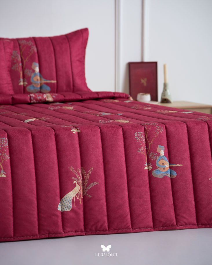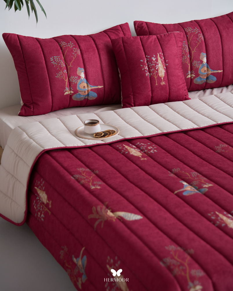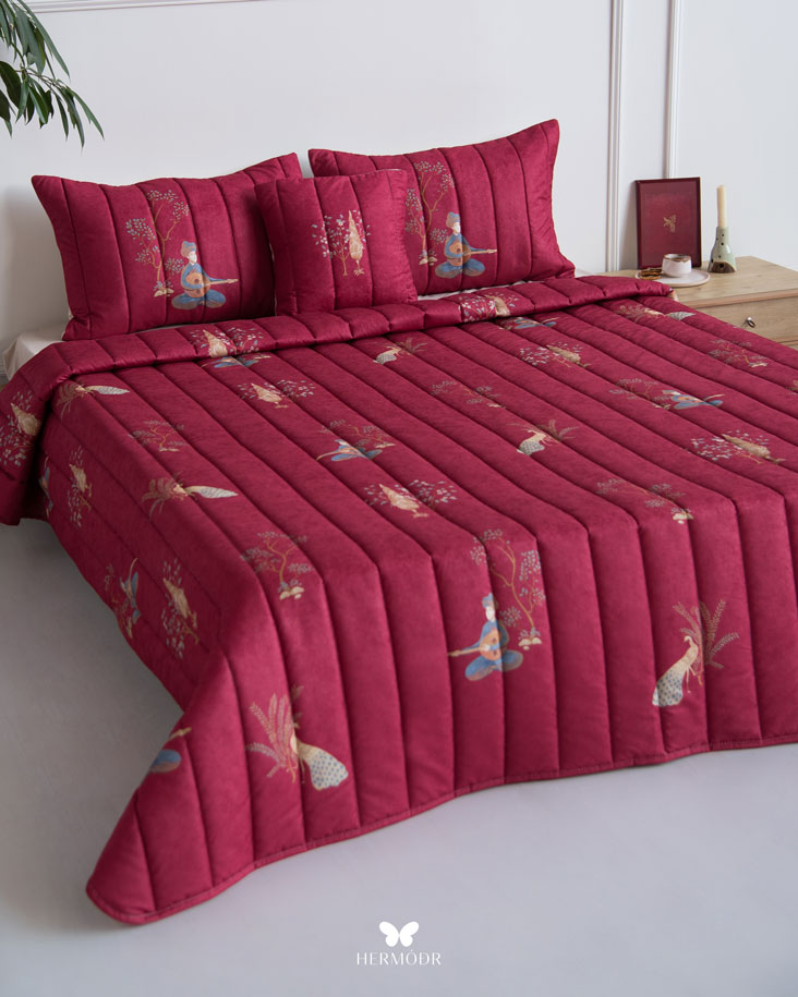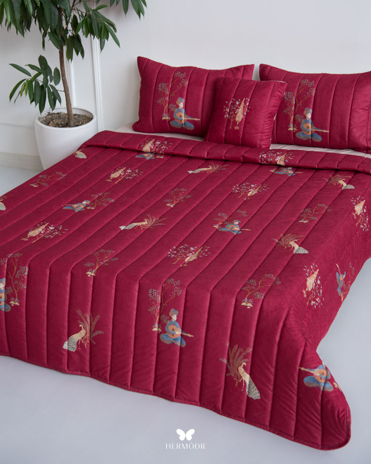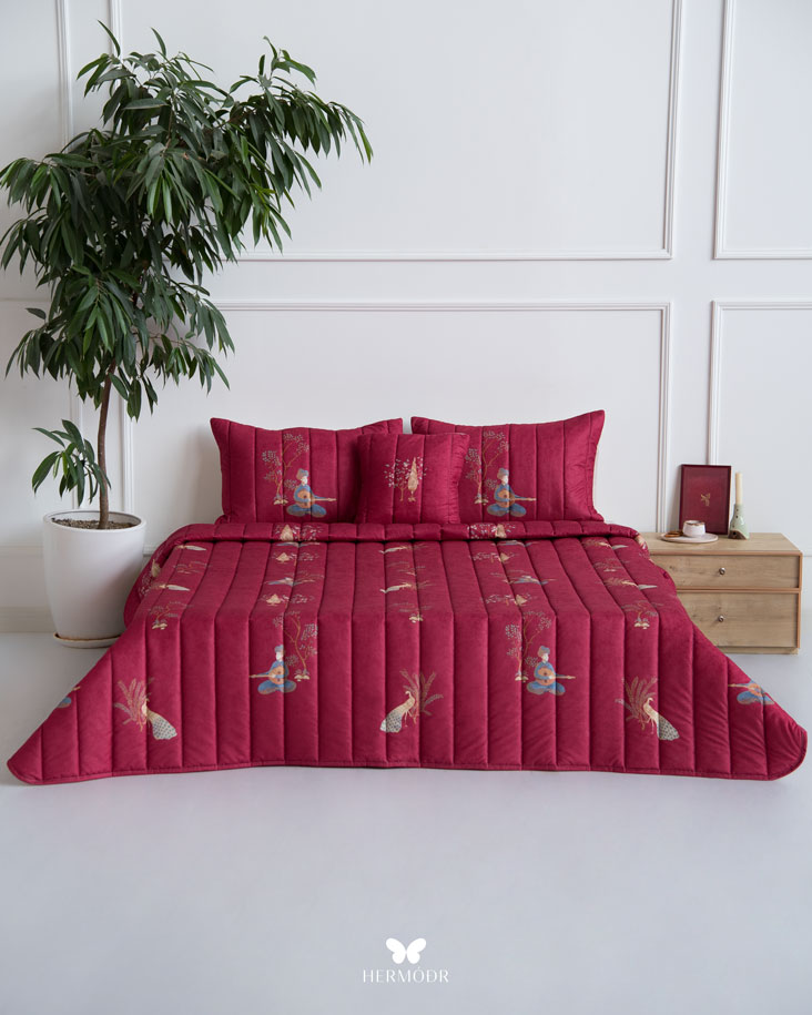روتختی چنگ و عود از مجموعه «بهاره» برند هرمُد است؛ انتخابی بی‌نقص برای فصول گرم سال و مناطق گرمسیر. رویه‌ی این روتختی از پارچه مخمل مونترو ساخته شده است؛ جنسی نرم، لطیف و درخشان که جلوه‌ای لوکس و گرم به اتاق خواب شما می‌بخشد. آستر داخلی از پارچه براش با بافتی متراکم تهیه شده که مقاومت بالایی در برابر شست‌وشو و استفاده روزانه دارد و در عین حال حس راحتی و لطافت ایجاد می‌کند.