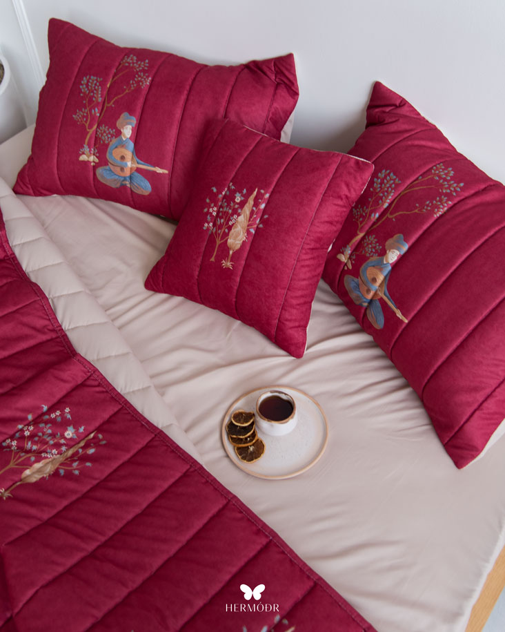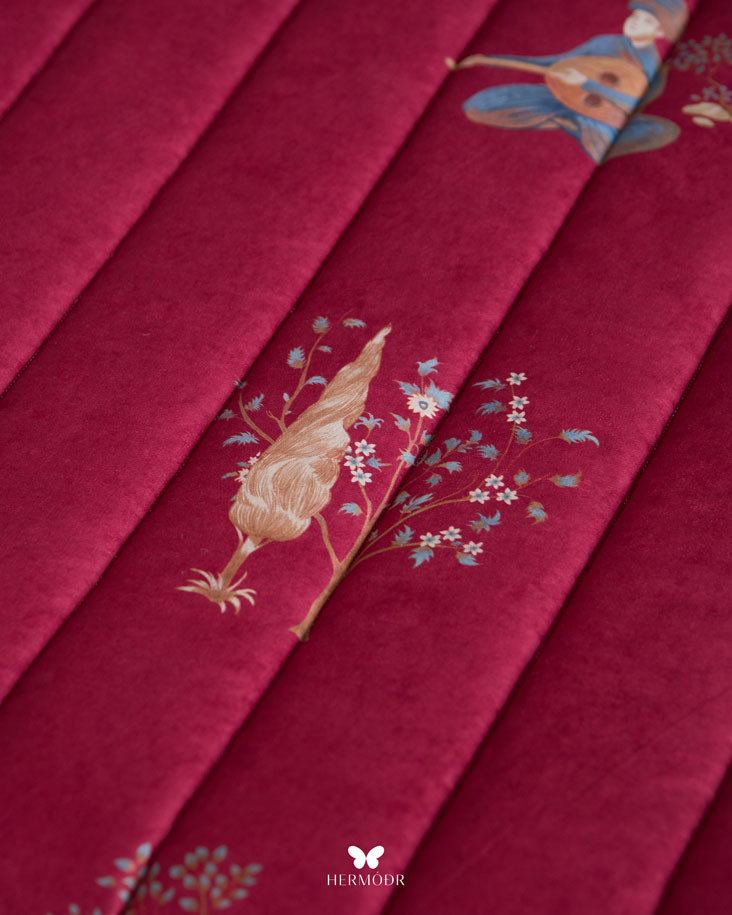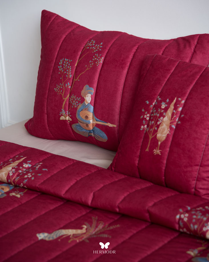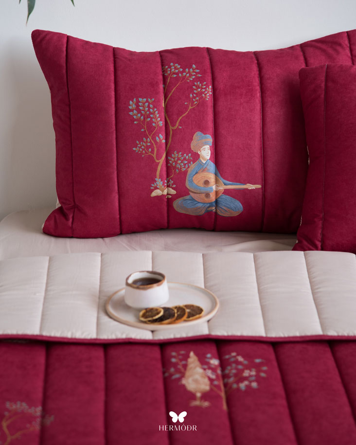 طراحی و دوخت روتختی بهاره چنگ و عود زرشکی