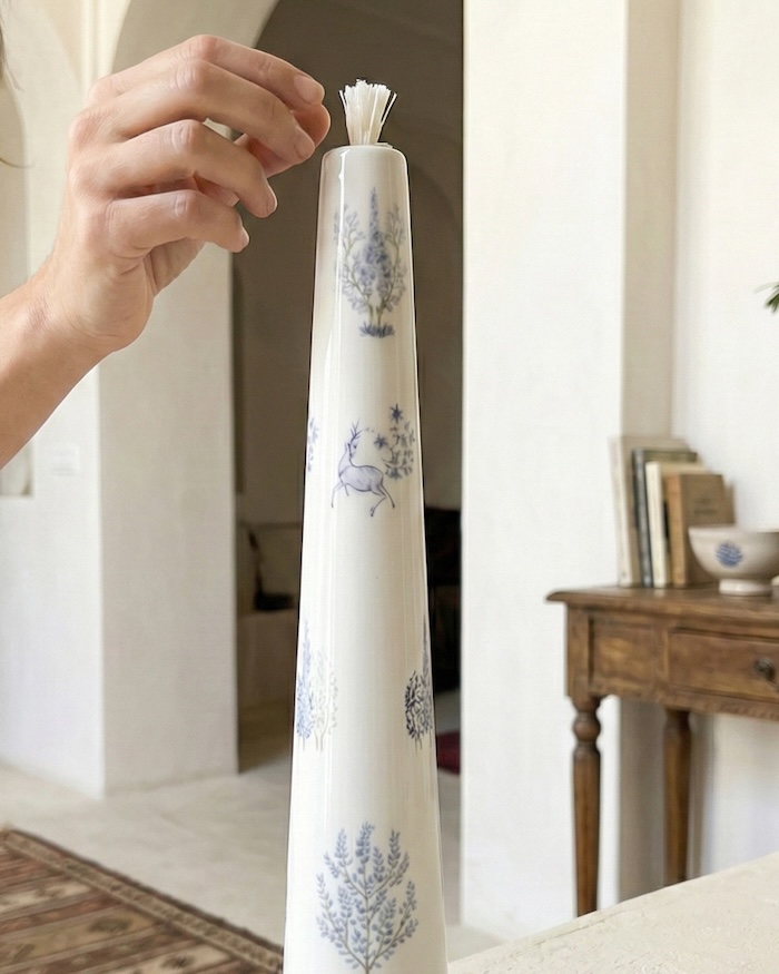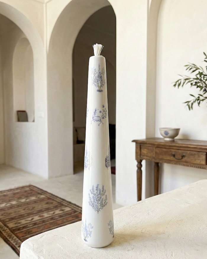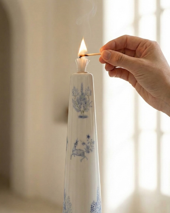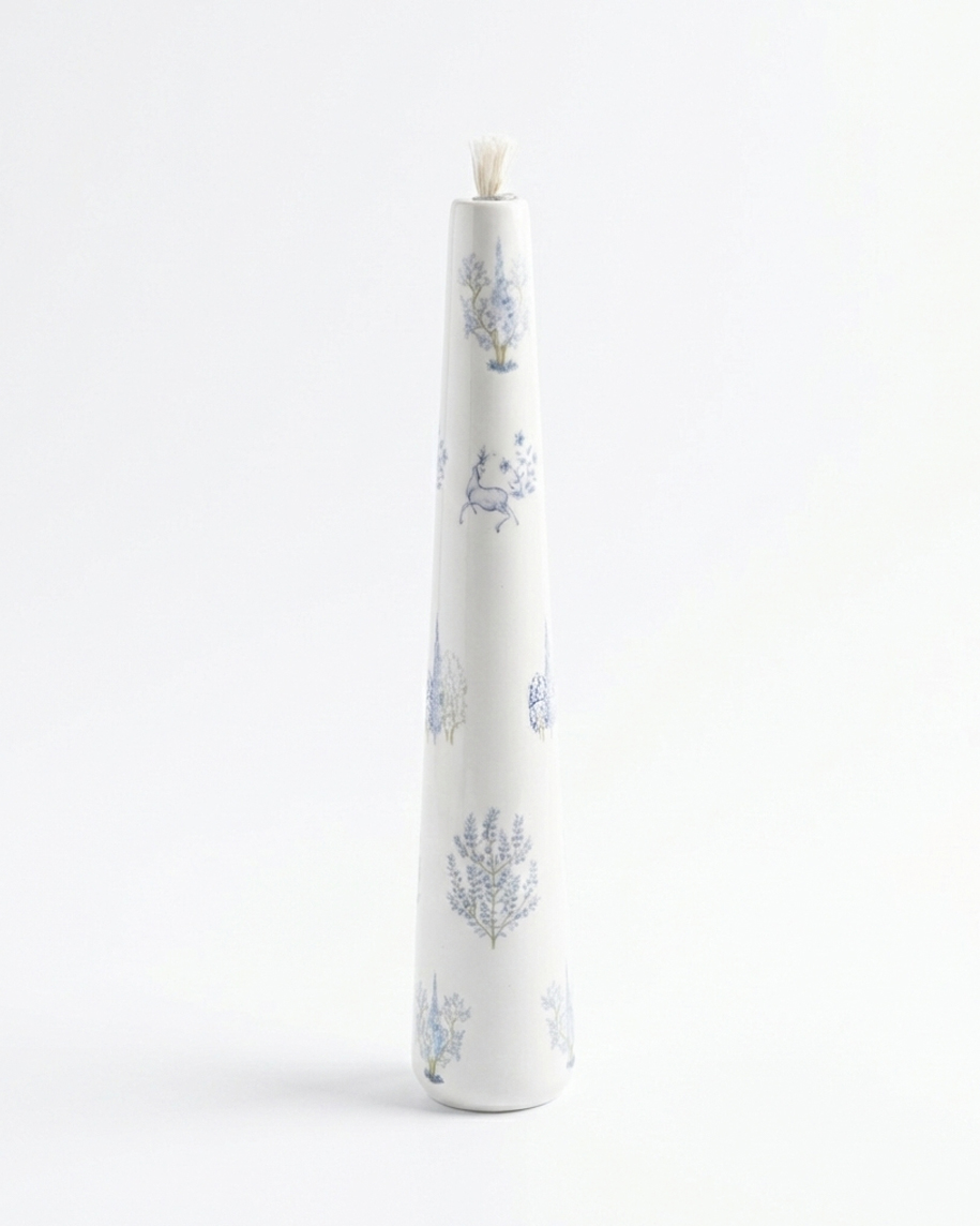 بدنهی این شمع از سرامیک ساخته شده و با ظرافت و دقت بالا شکل گرفته است و همزمان یک شمع مصرفی و یک المان تزئینی است.