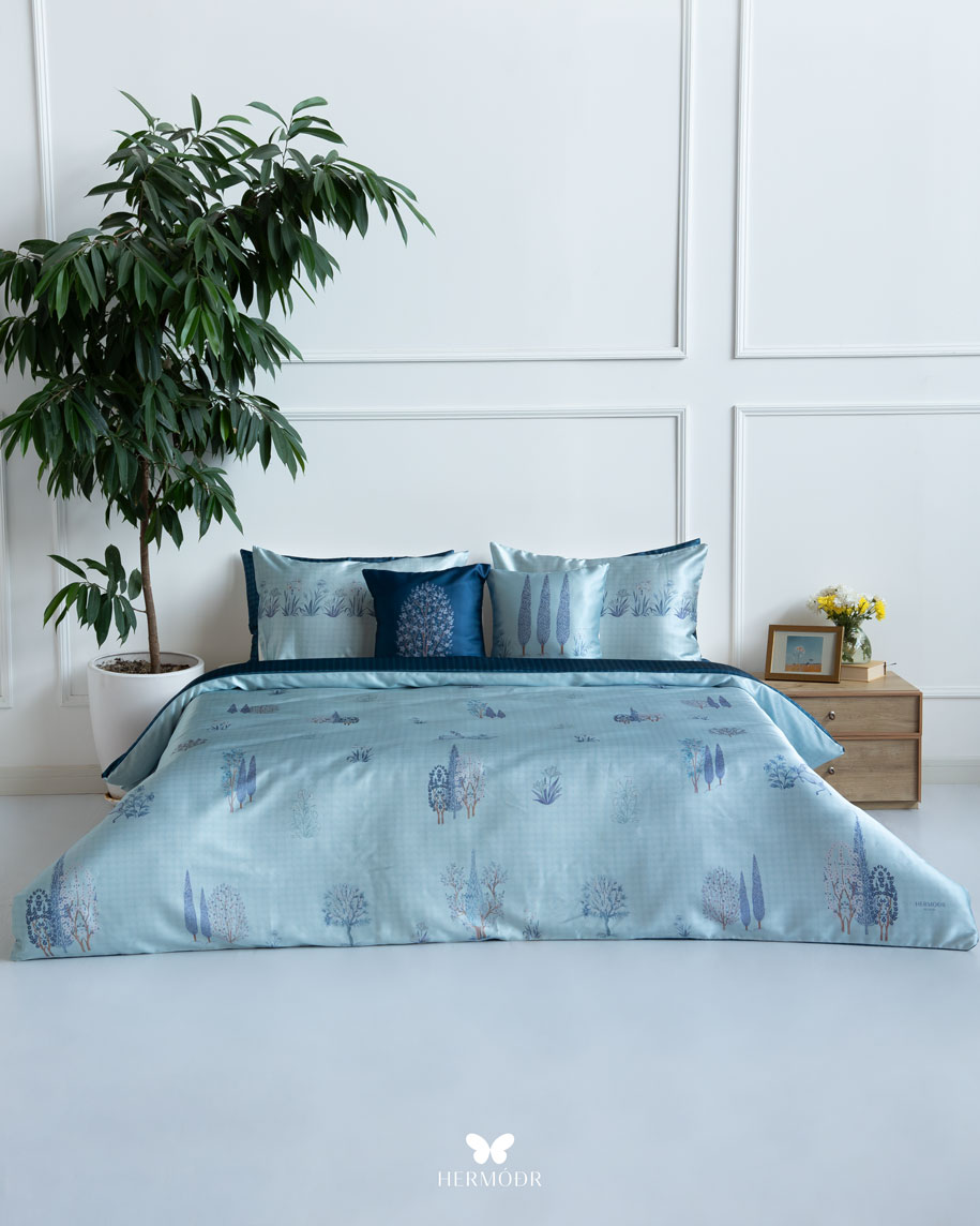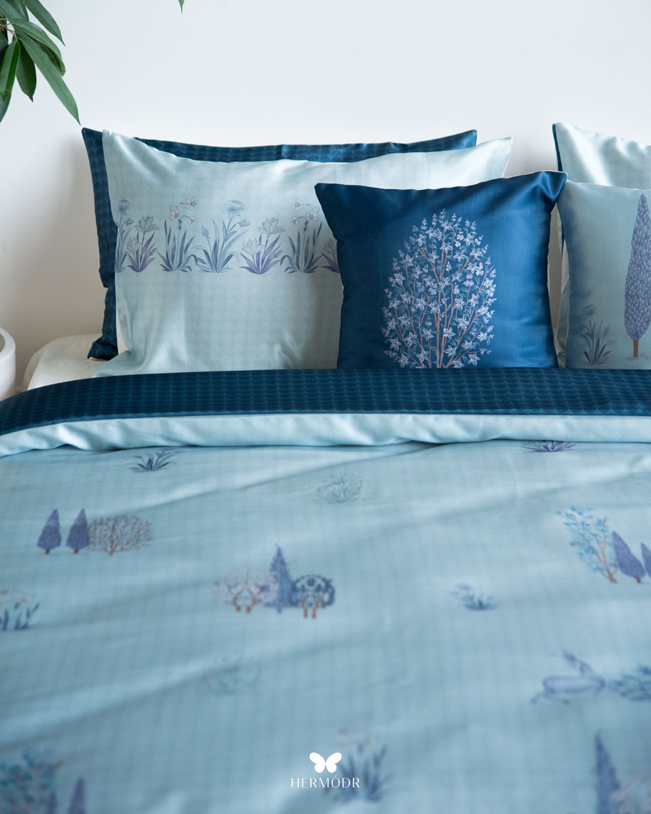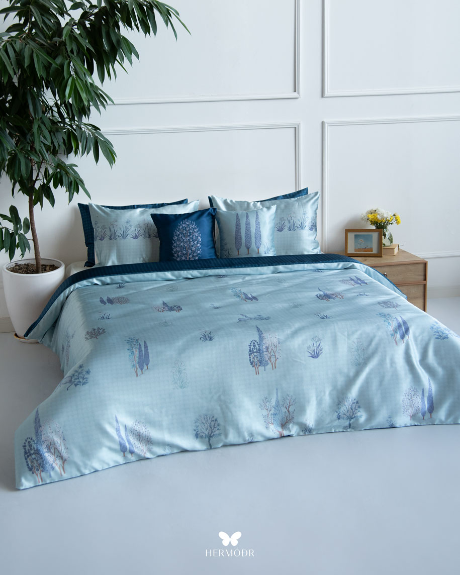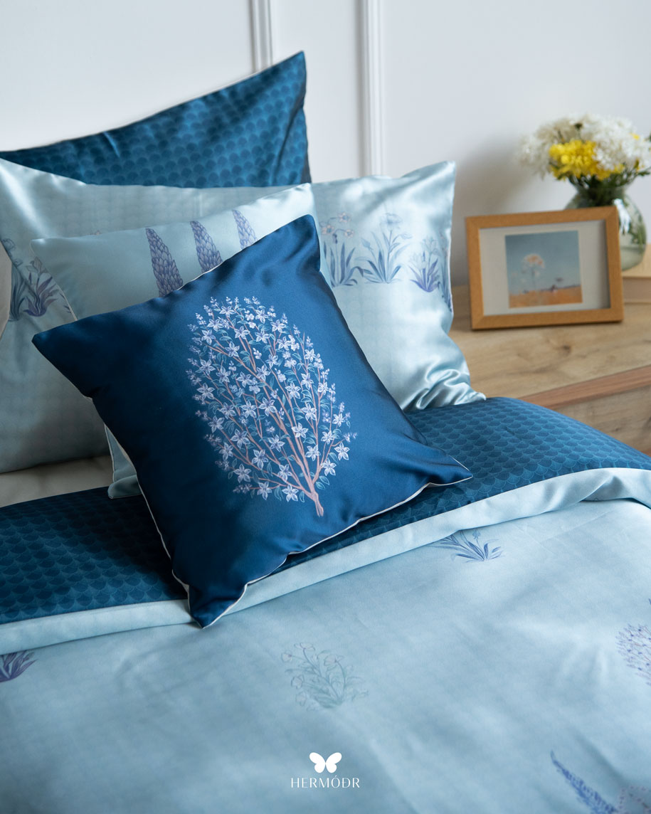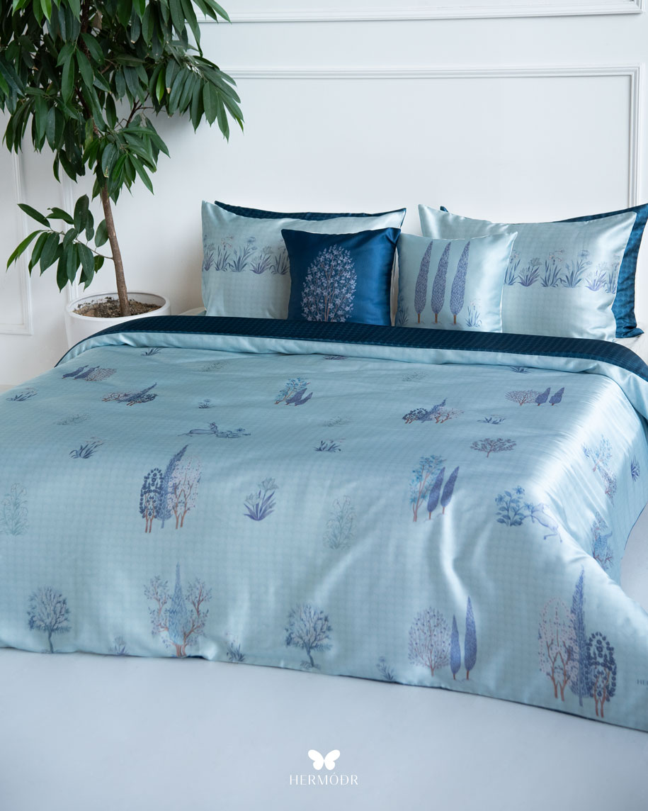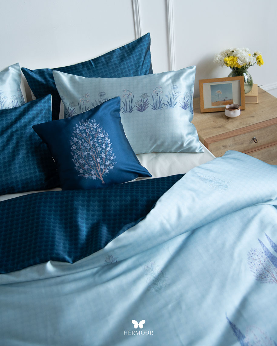 ترکیب رنگهای لاجوردی (آبی ایرانی) و آبی ملایم در کنار نقوش الهامگرفته از نگارگری ایرانی، فضایی شاعرانه و اصیل در اتاق خواب شما میآفریند. این طراحی بهسادگی با سبکهای کلاسیک و نئوکلاسیک هماهنگ میشود و حسِ هماهنگی و آرامش را در فضا جاری میکند.