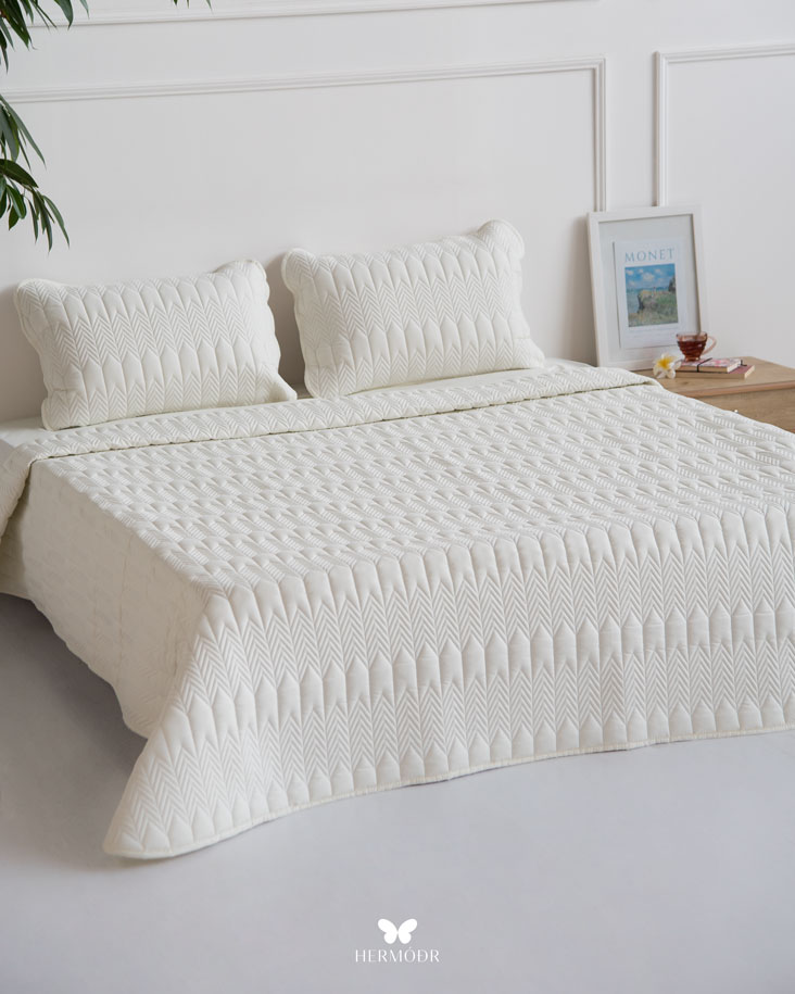 مزیت مهم روتختی کاج سفید عاج سبکی و قابلیت تنفس آن است. ضخامت حدود ۰.۵ سانتیمتر و گردش هوای مناسب در لایهها مانع از تعریق میشود و این محصول را به گزینهای ایدهآل برای فصلهای گرم و مناطق جنوبی کشور تبدیل میکند. همچنین، دوخت ظریف و متراکم این روتختی، ماندگاری و زیبایی آن را چند برابر کرده است.