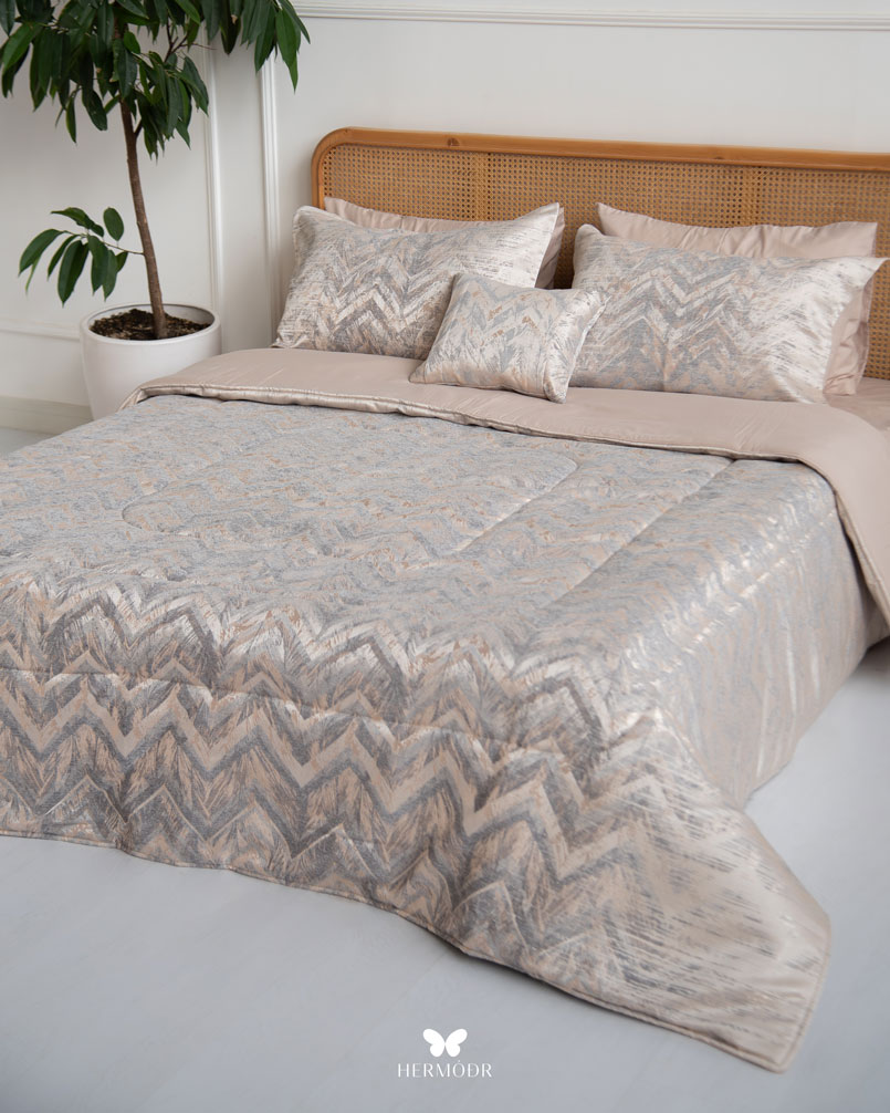 یک انتخاب بینظیر برای تجربهی لذتبخش و راحتی در خواب است. با توجه به مشخصات و ویژگیهای برجستهاش، این روتختی به عنوان یک محصول با کیفیت و با دوام شناخته میشود. کیفیت و نوع پارچه این روتختی از جنس ساتین ژاکارد ساخته شده است که برخورداری ازشاین و جذابیت بصری بالایی می باشد. این پارچه بدون کاهش و افت رنگ و طرح، بدون رنگدهی تولید میشود. جنس آستر لحاف و روکش تشک نیز از جنس براش با لطافت و مقاومت بالا برخوردار است. کیفیت دوخت روتختی لوکس هرمد دارای 4 مرحله دوخت اختصاصی است و بخشی از آن دوخت دستی دارد که ظرافت و مقاومت بسیار بالایی به محصول میبخشد. همچنین، دوختهای متعدد بر روی لحاف طول عمر الیاف را افزایش میدهد و ظرافت و زیبایی منحصر به فردی به محصول میبخشد. بعد از اولین شست و شو با انجام اولین و یا چندین بار شست و شو، شما به کیفیت منحصر به فرد این محصول پی خواهید برد. آزمایشات مختلف انجام شده توسط هرمد در سالهای اولیه تاسیس، اطمینان از عدم افت کیفیت محصول پس از شست و شو را به ما میدهد. بستهبندی بهداشتی و ایمن تمام محصولات هرمد مستقیماً در کارخانه بستهبندی و برای مشتریان ارسال میشوند. استفاده از کاور مقاوم و بهداشتی و کارتن مقاوم، اطمینان میدهد که محصول با رعایت کامل نکات بهداشتی به دست مشتریان میرسد. سایزبندی این روتختی در سایز دونفره (240×240 سانتیمتر) عرضه میشود. همچنین، روتختیهای دونفره مناسب انواع تشک با سایزهای 160، 180 و 200 میباشند. سایز روبالشی ها در ابعاد 50×70 سانتی متر و رویه کوسن ها 40×40 سانتی متر می باشد. گارانتی و ضمانت محصولات هرمد دارای دو ضمانت نامه می باشند. ضمانت اول مرجوعی 48 ساعته کالا و عودت وجه می باشد. این یعنی اگر هر محصولی از هرمد به دست شما رسیدو مورد پسند شما نبود می توانید آن را برگشت زده و هزینه خود را دریافت نمایید. ضمانت دوم، ضمانت 1 ساله کالا می باشد که شامل عدم رنگدهی و افت کیفی محصول می باشد. شباهت عکس و محصول نهایی با توجه به تفاوت رنگها در صفحه نمایش دستگاههای مختلف، ممکن است رنگ محصولات در تصویر تا 2٪ با واقعیت متفاوت باشد. با این توضیحات، امیدوارم که تمامی اطلاعات مورد نیاز شما درباره این محصول فراهم شده باشد.